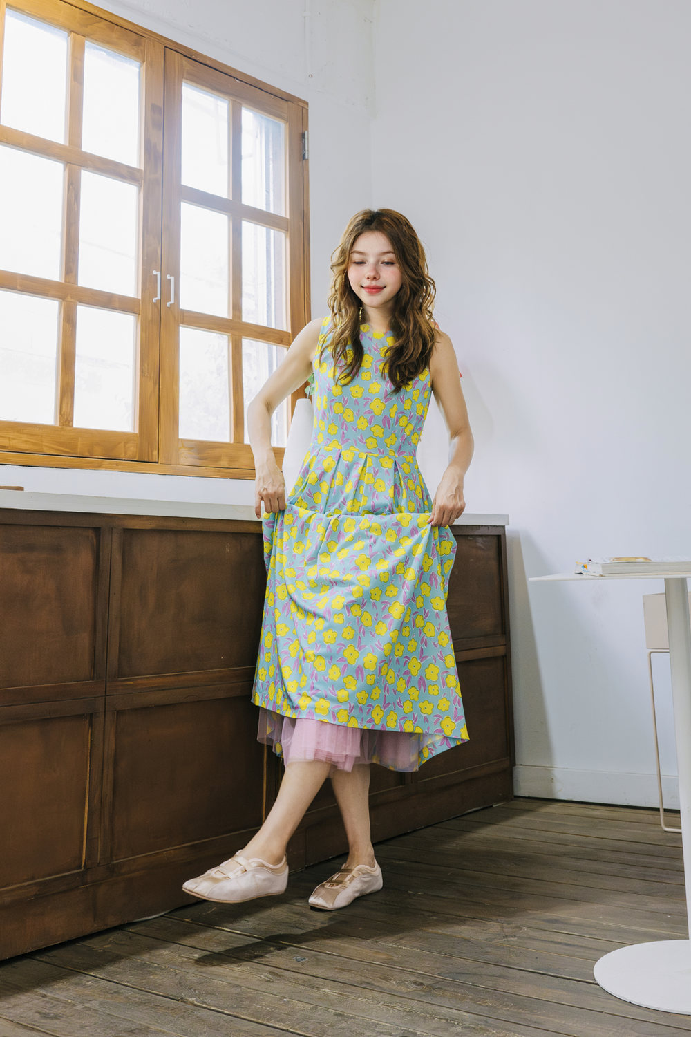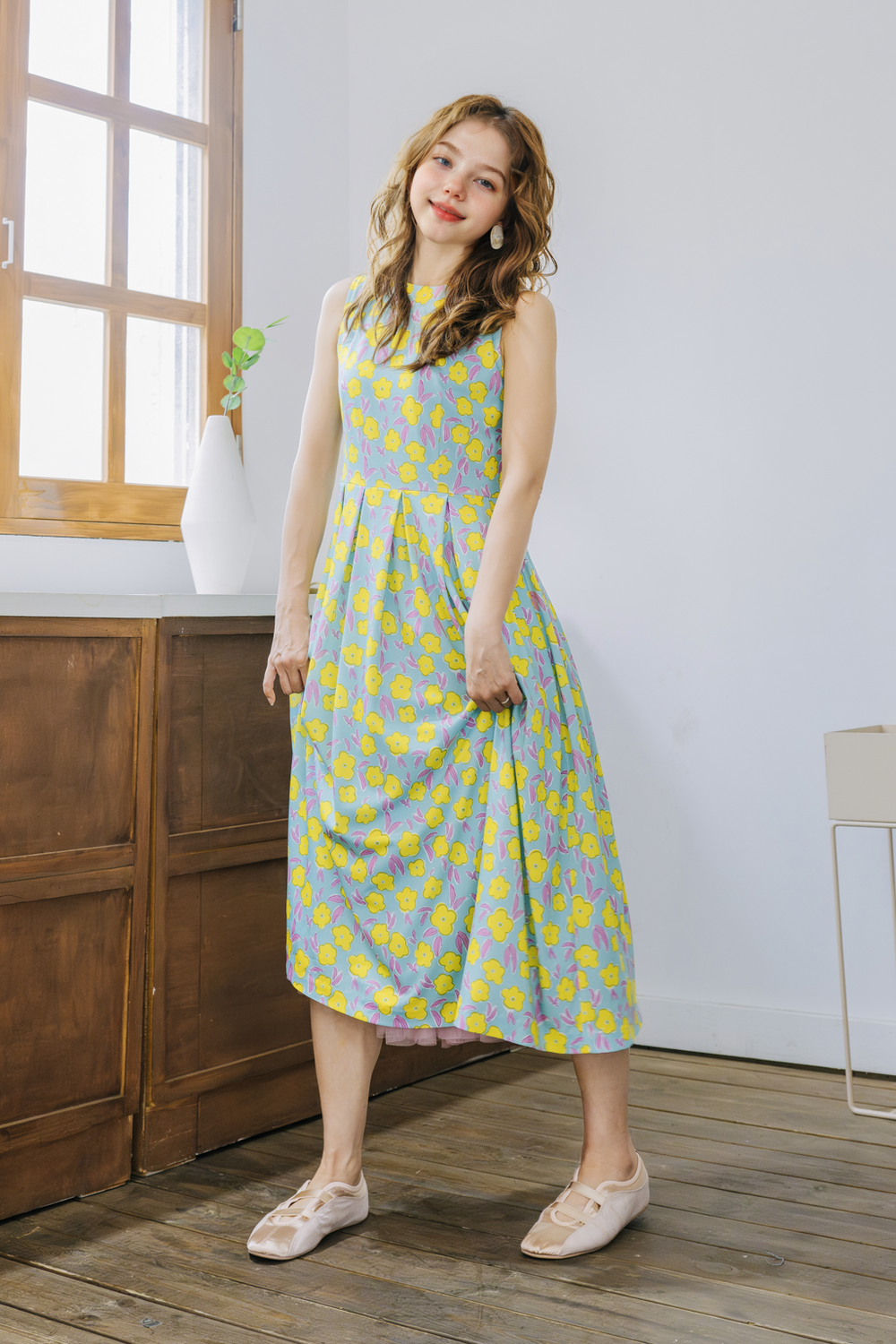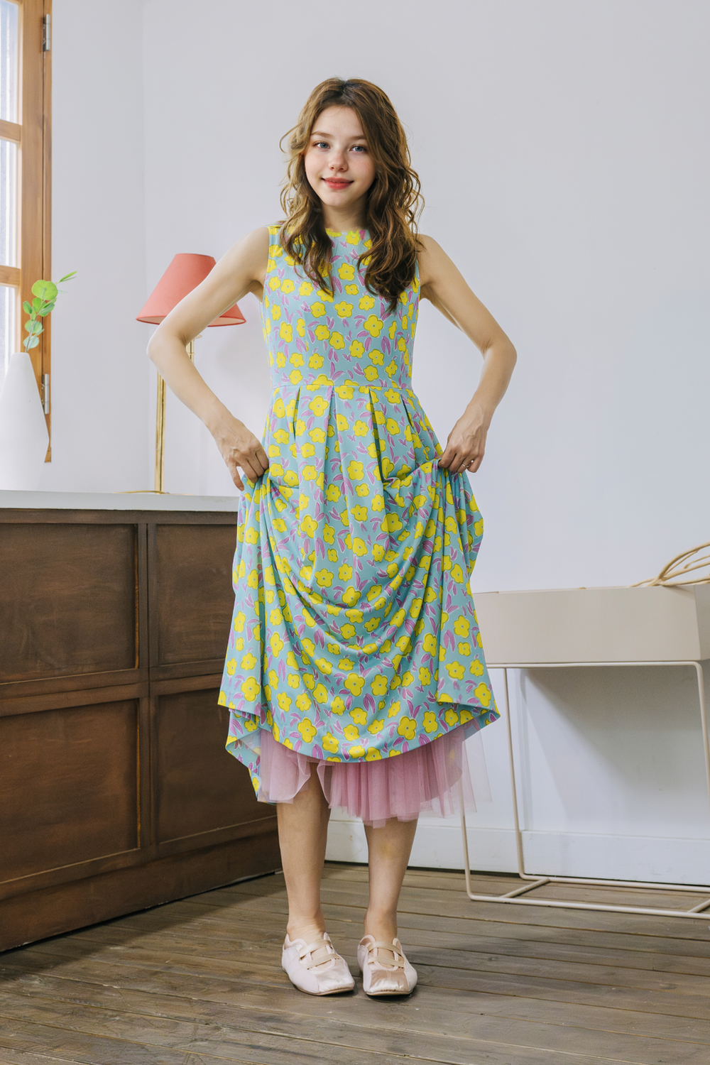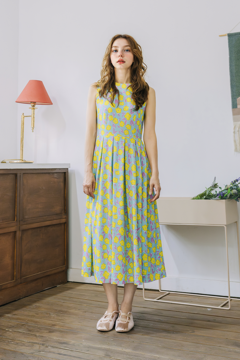 작게 피어난 노란 꽃들을 한폭의 드레스에 담아