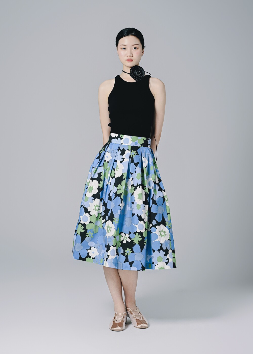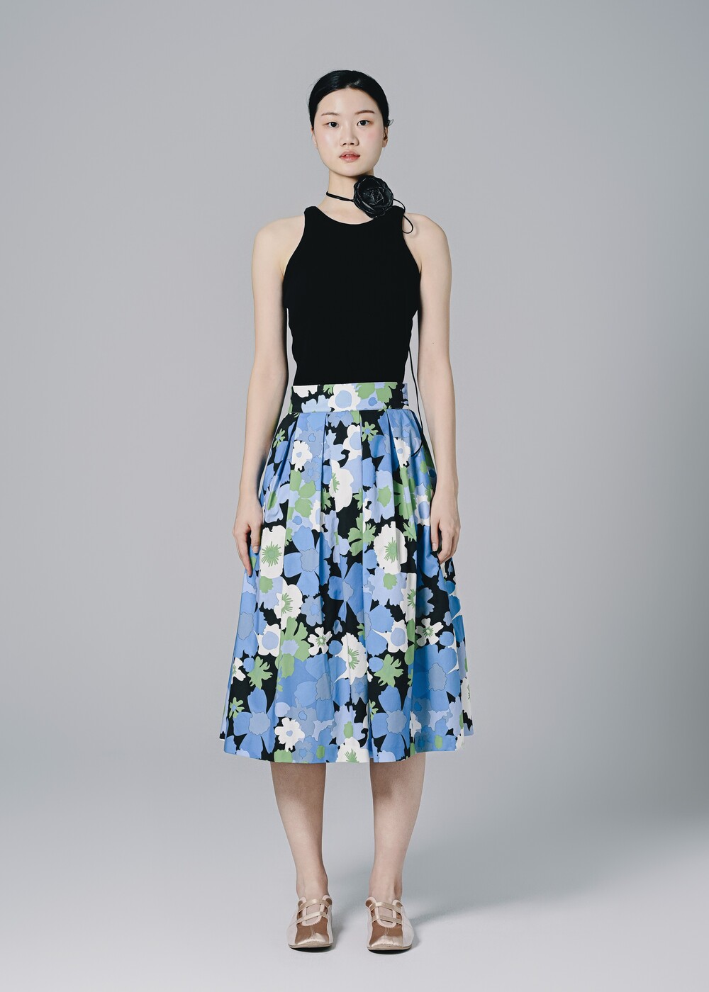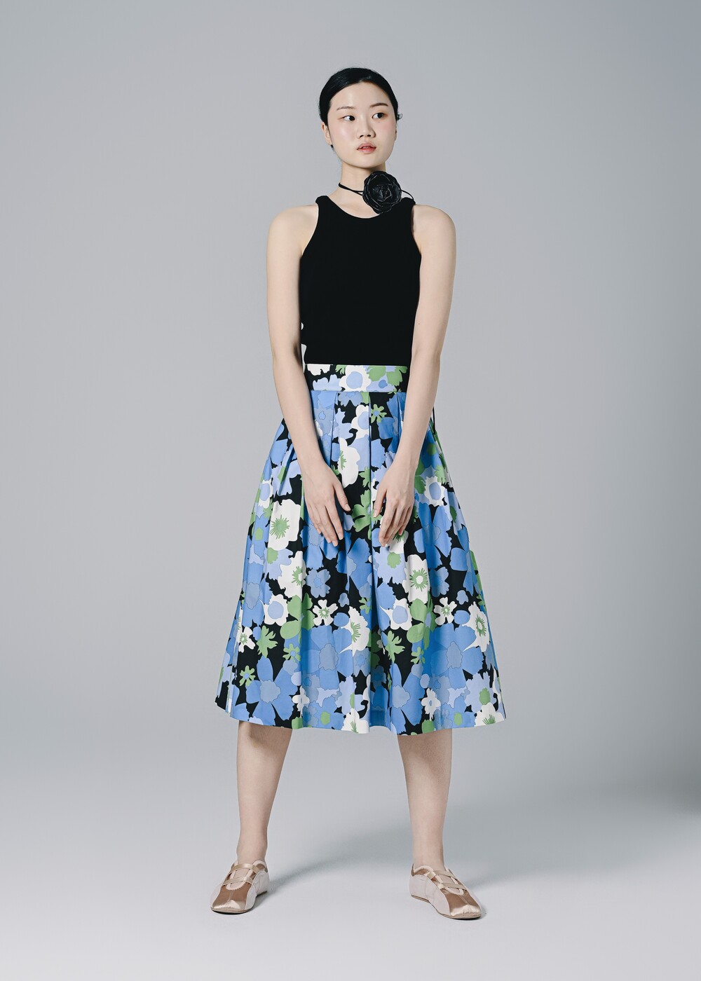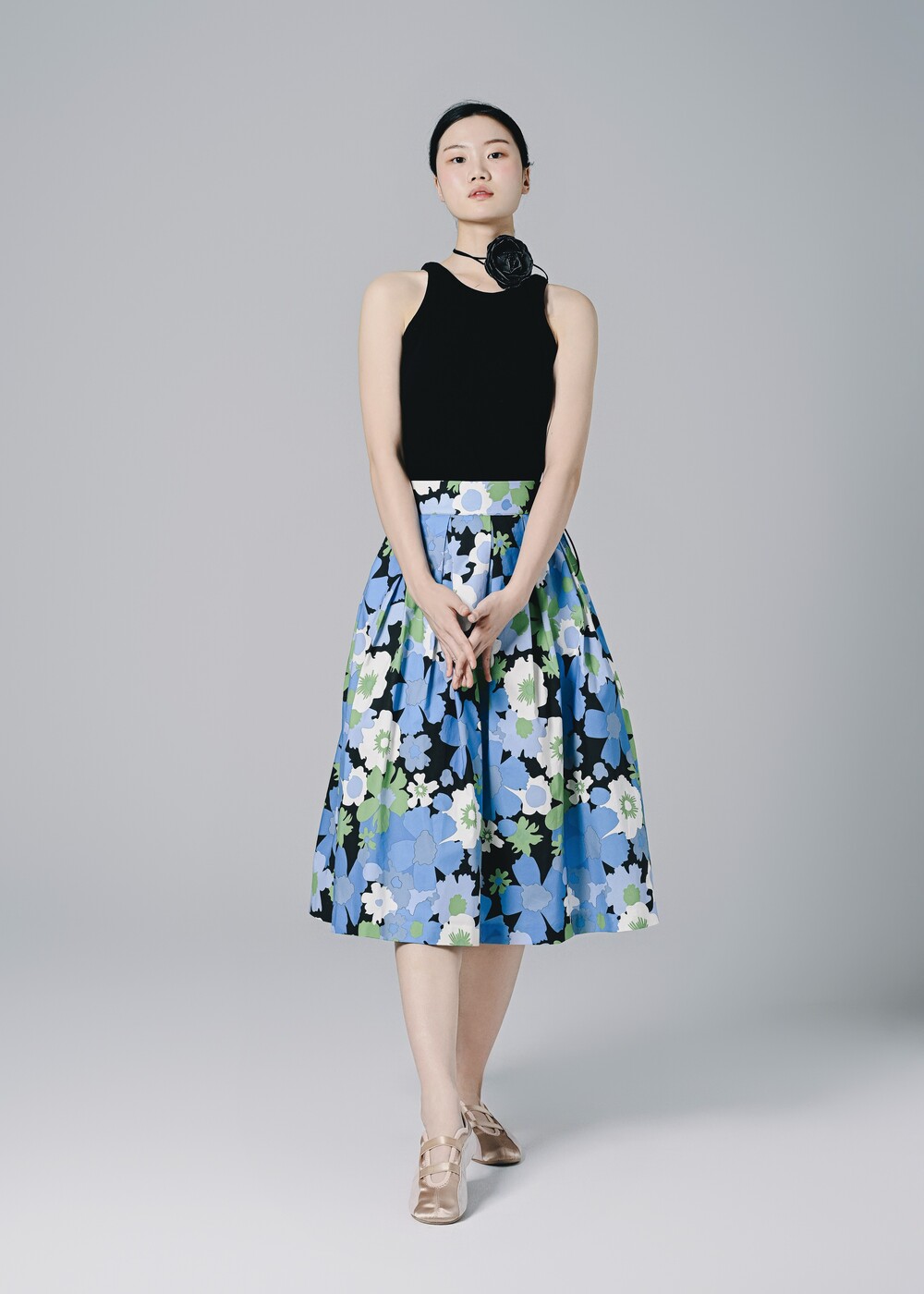 이 스커트는 프린팅 디자인만으로도 충분히 화려하고 고급스러운 느낌을 주고