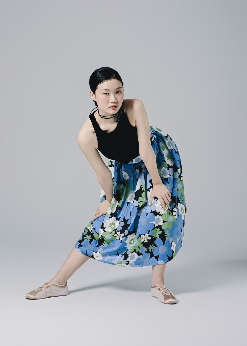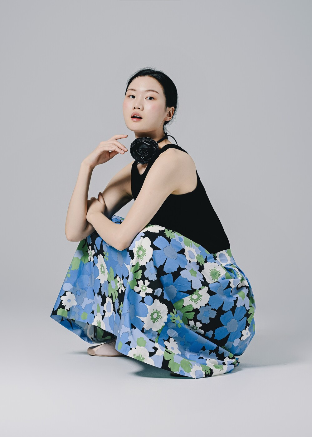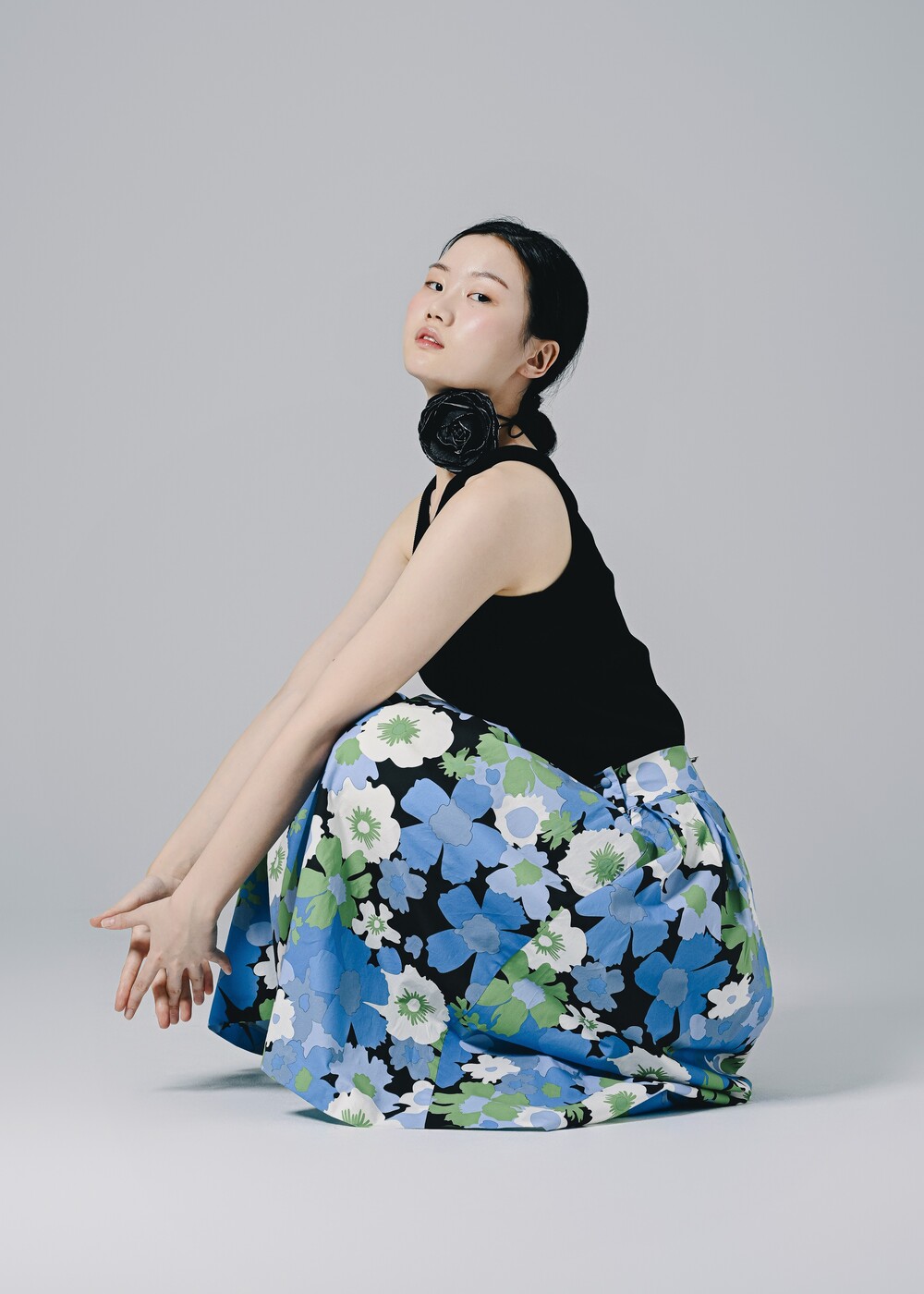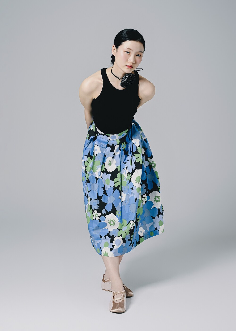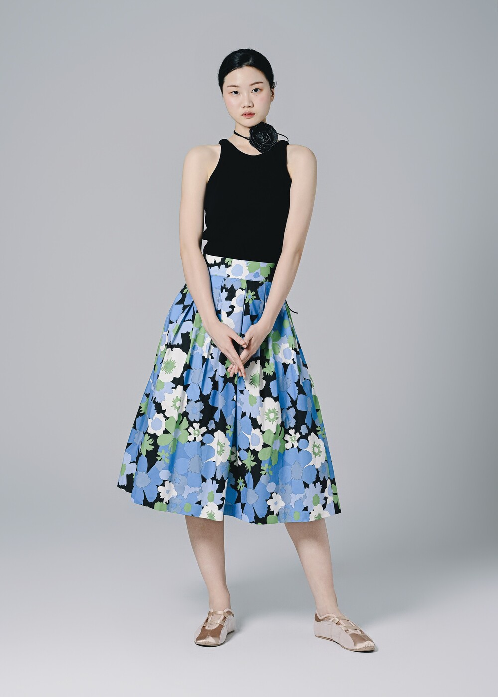 이 스커트는 프린팅 디자인만으로도 충분히 화려하고 고급스러운 느낌을 주고